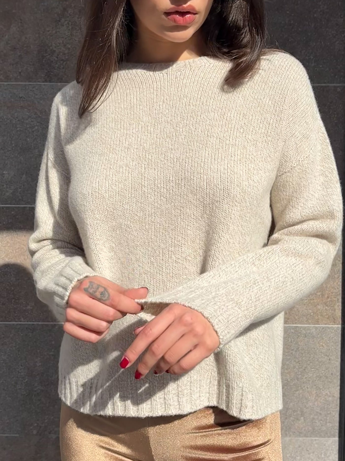 Perfetto per la stagione fredda, questo girocollo unisce morbidezza e traspirabilità, offrendo un capo caldo ma al tempo stesso confortevole e durevole. Il design essenziale lo rende estremamente versatile: indossalo da solo per un look minimal o sotto giacche e cappotti per uno stile più strutturato.