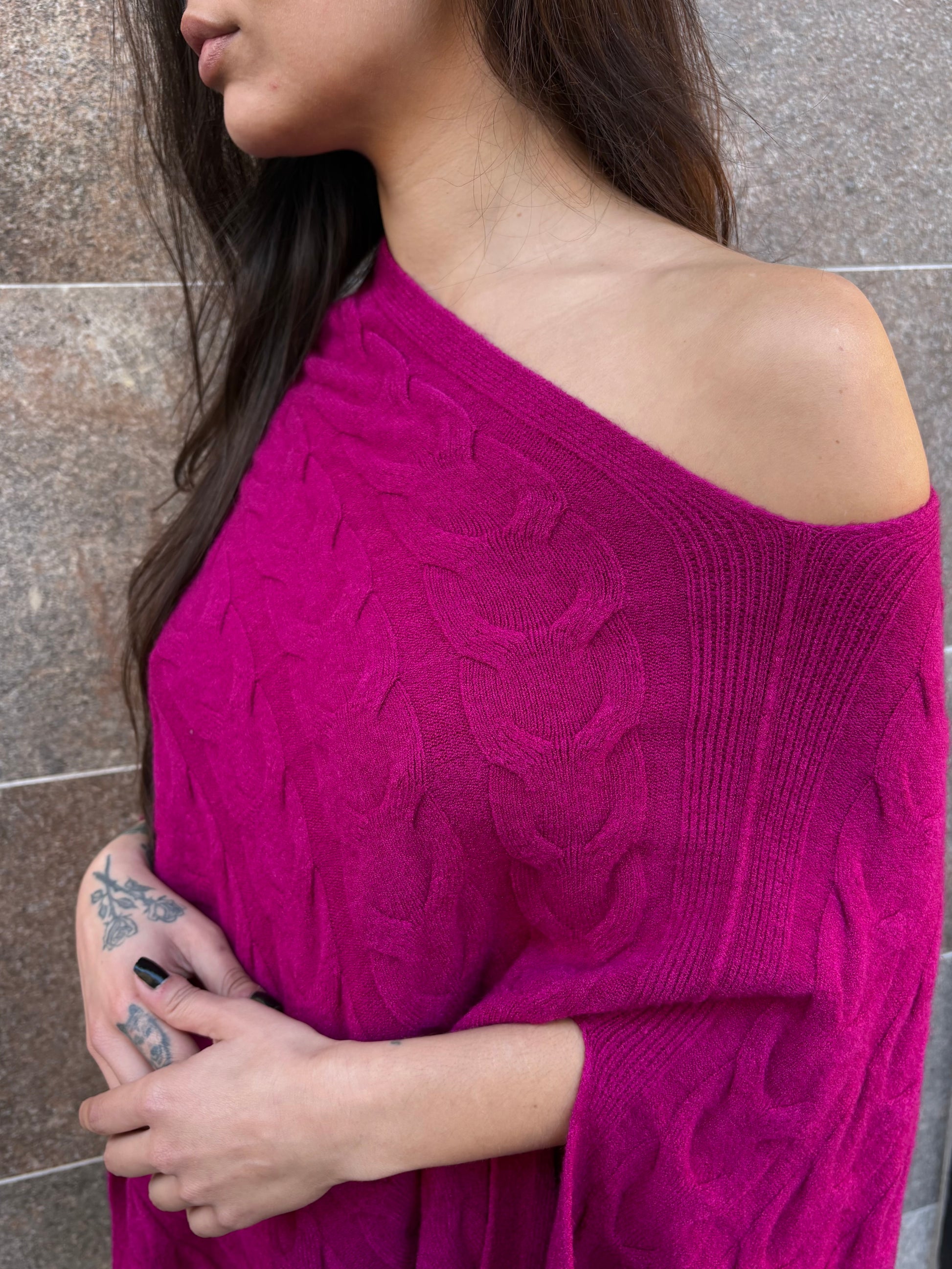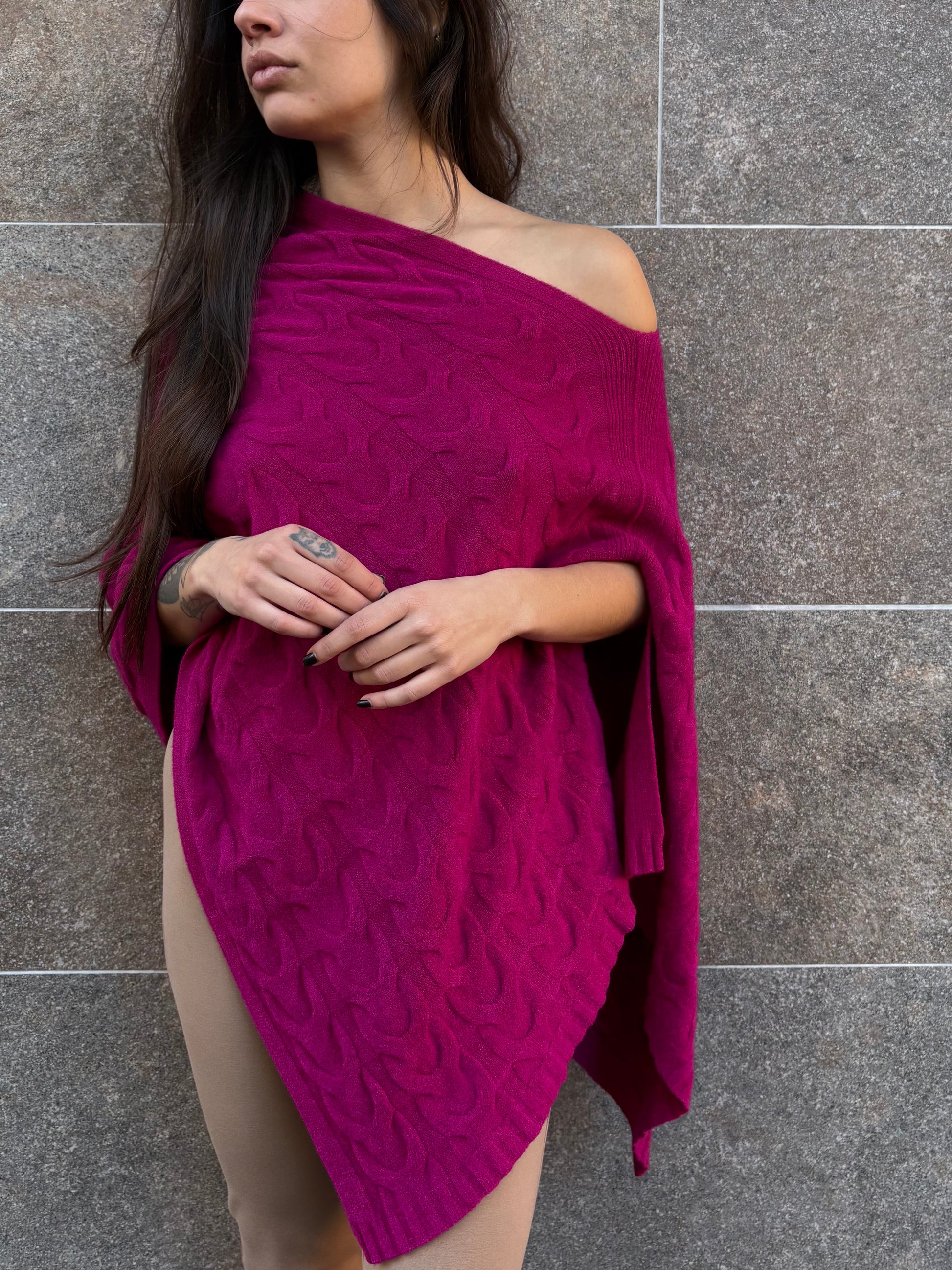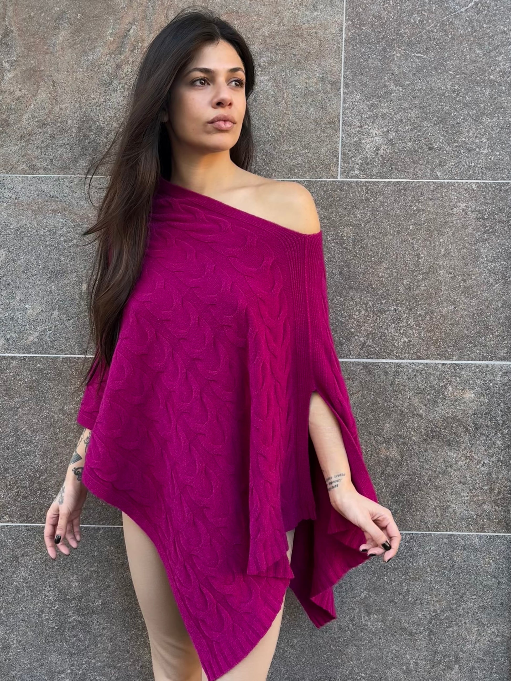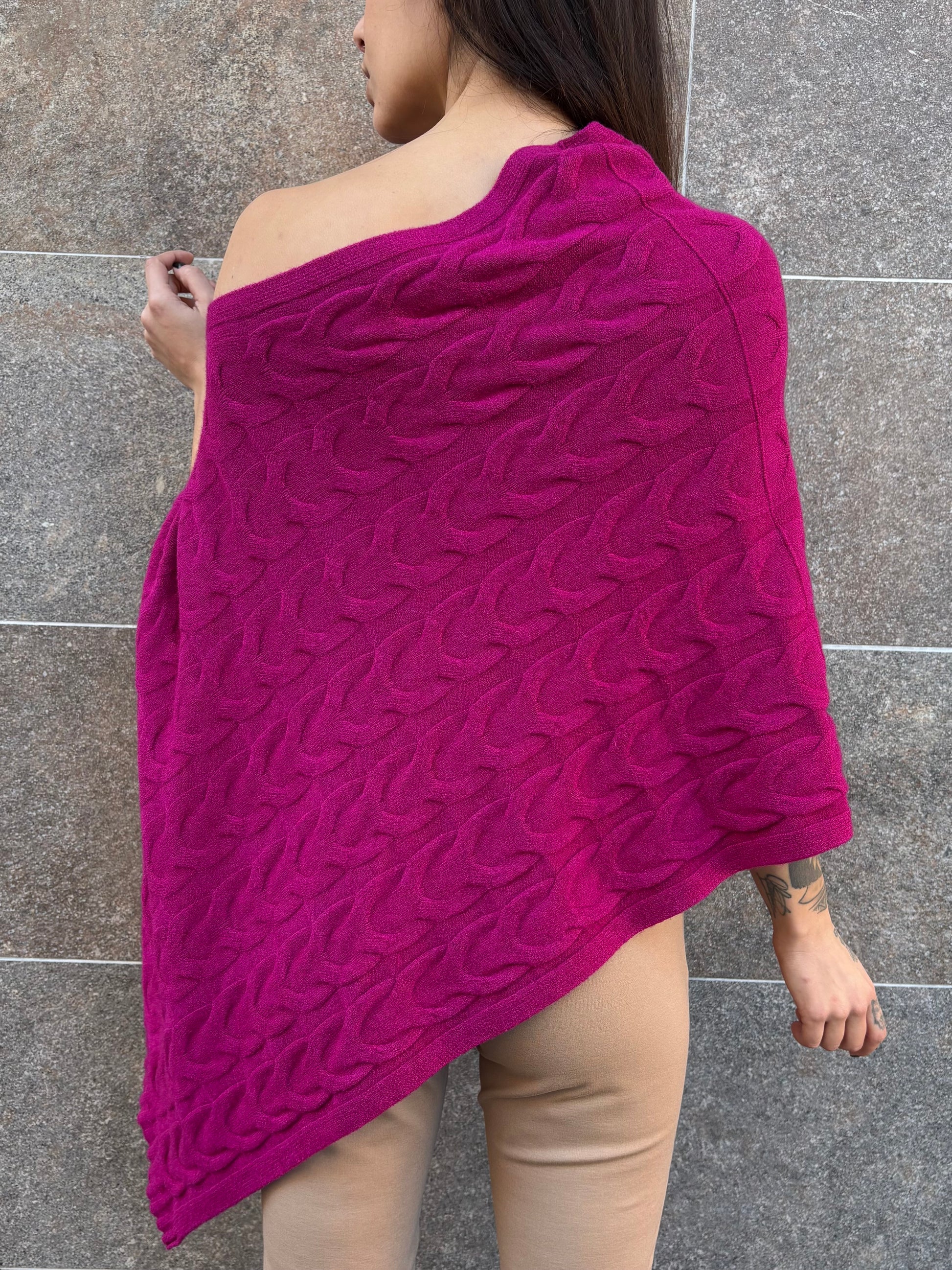 Avvolgiti in un abbraccio di calore e stile con la mantella a trecce, il capo perfetto per la stagione fredda. Realizzata con un filato morbido e avvolgente, presenta una raffinata lavorazione a trecce che aggiunge un tocco di artigianalità e classe al tuo look.