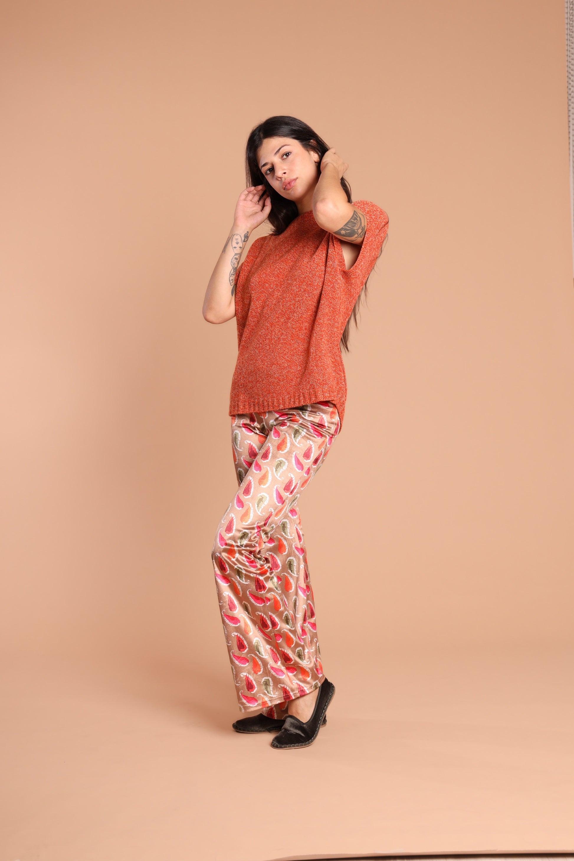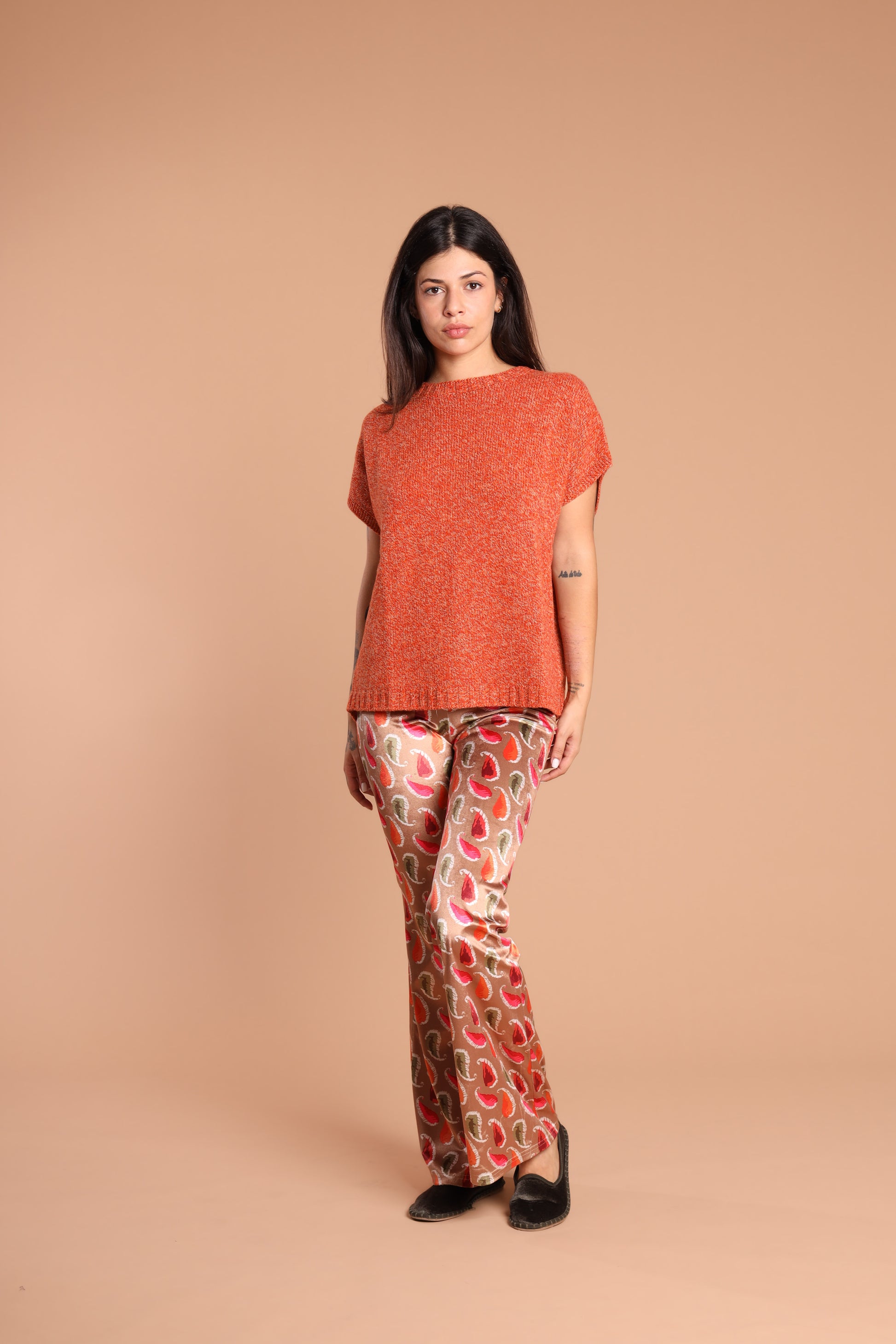 Un pantajazz dallo stile audace, in velluto stretch con fantasia optical che cattura lo sguardo, unendo eleganza e comfort. Perfetto per chi cerca un capo originale, versatile e distintivo.