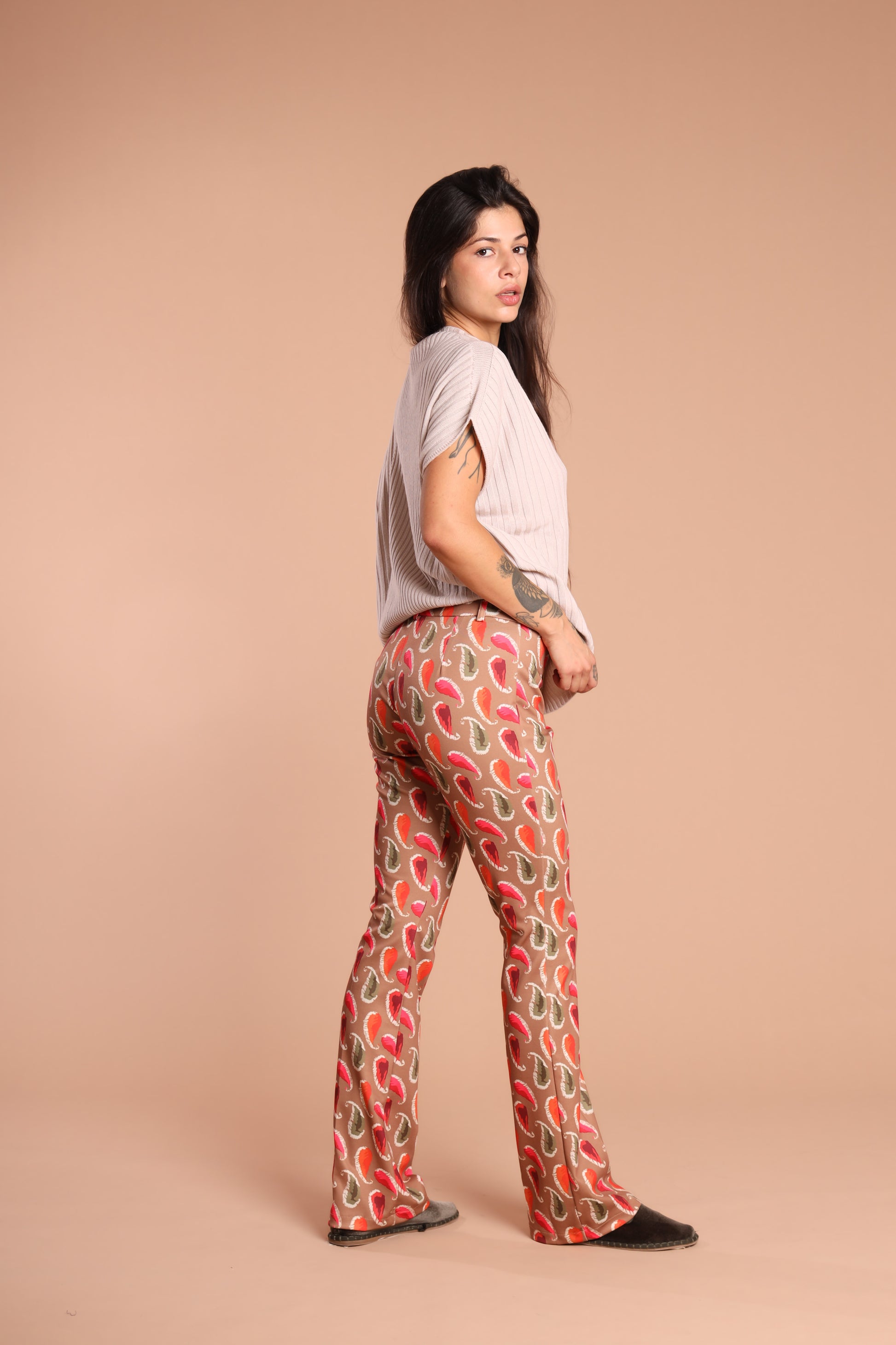 Taglio deciso, anima creativa. Questo pantazampa unisce una linea svasata che slancia a stampe vivaci che danno ritmo al look senza eccessi. Perfetto per chi vuole distinguersi con stile, senza rinunciare alla praticità.