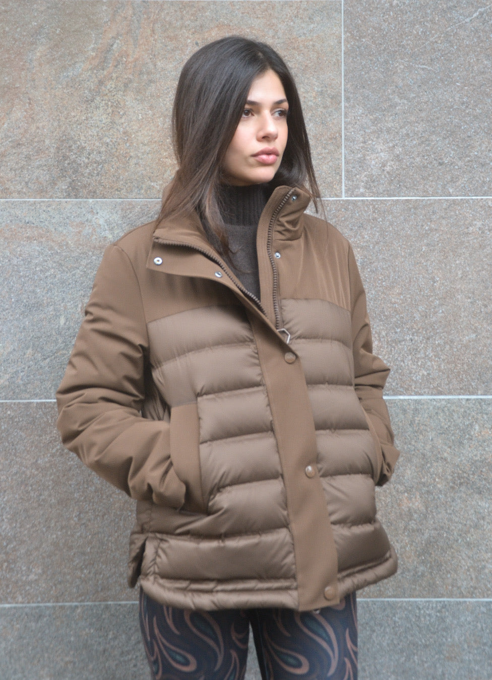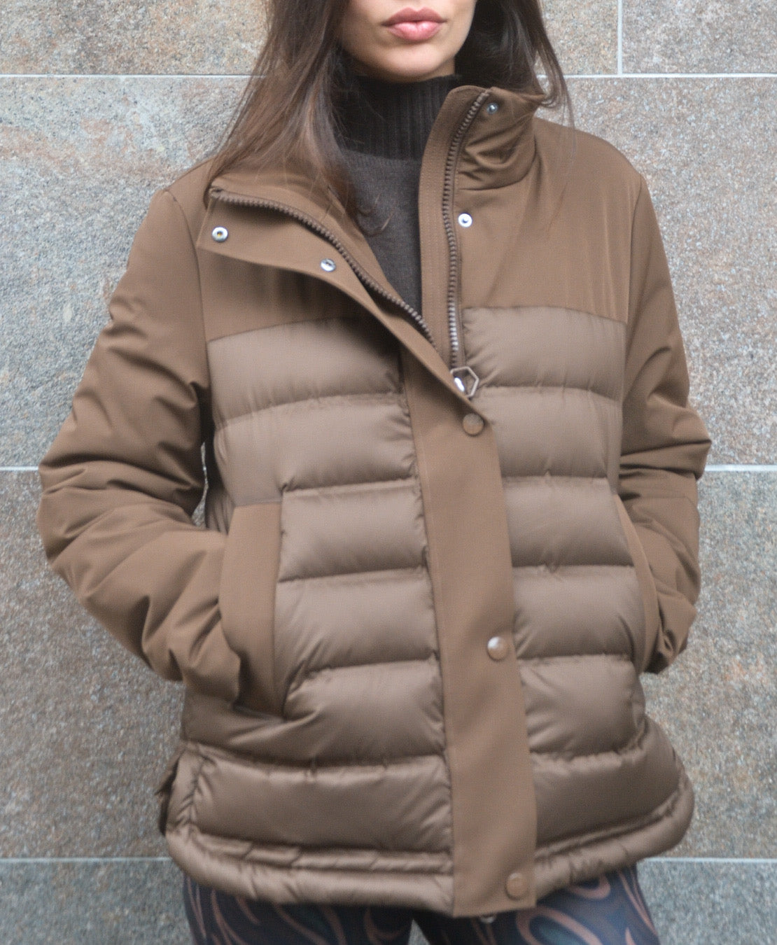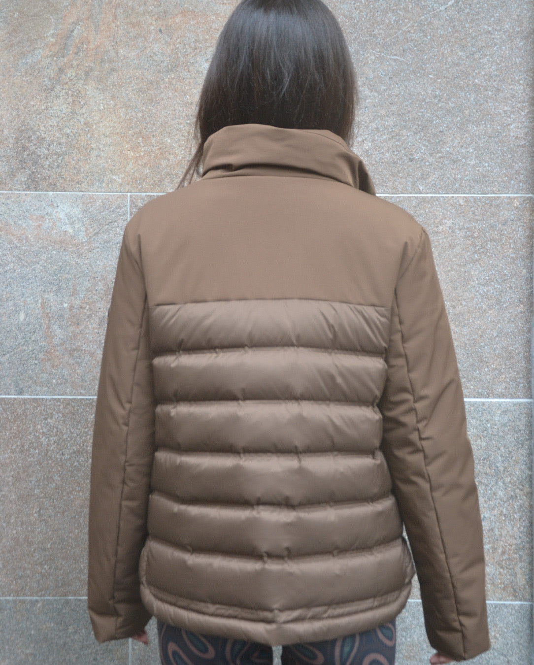 Un capo versatile e contemporaneo, ideale per look urbani o per il tempo libero, è il perfetto equilibrio tra performance e stile contemporaneo. Questo piumino corto unisce tecnologia e calore naturale grazie alla sua struttura ibrida: la parte in tessuto tecnico protegge da vento e pioggia leggera, mentre gli inserti imbottiti in vera piuma d’anatra garantiscono isolamento termico e leggerezza.